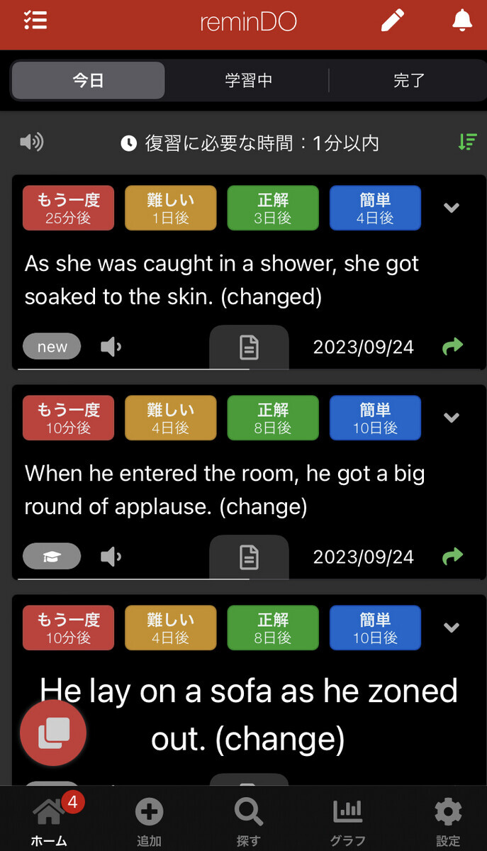 気になるフレーズは暗記アプリに入れる。自分は reminDO というやつを使っていてその日の中で1番聞き取れなかった問題を追加していく。追加さえすれば記憶を固着させるタイミングで勝手に通知を出してくれるので便利。
